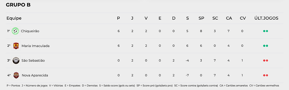 Boletim 03 - Interbairros 2026AAPC há 1 hora1 min de leitura Resultados atualizados:Classificação atualizada:Artilharia:Próximas partidas:Tabela atualizada:Tabela - Interbairros 2026 - OK - 5.pdfFazer download de PDF • 1.03MB